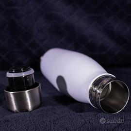 Borraccia Bottiglia termica per mantenere i liquidi caldi o freddi. In alluminio e acciaio bianchi con il logo rosso di Hoover. Nuovo mai usato.