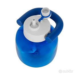 Vendiamo nuova borraccia in resistente RPET con capacità di 1,8 L. Con originale forma di kettlebell in colore traslucido lucido. Include chiusura a vite per un'ottima tenuta, cannuccia e robusta maniglia per il trasporto. Priva di BPA.