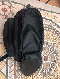 - Scomparti: 1 scomparto principale, 2 scomparti laterali extra in tessuto tecnico, 2 scomparti nella copertura della borsa, elastico superiore esterno alla copertura per riporre altri oggetti, portabottiglia posteriore.