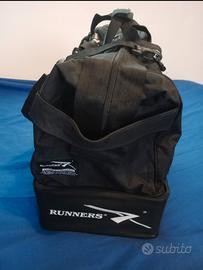 Borsa sportiva Runner calcio per allenamenti , vintage introvabile (L51_A57_P35)cm nuovo spellato un po' solo da parte interna ,con etichetta a tracolla in tela ,regolabile e porta scarpe integrato colore nero 60€