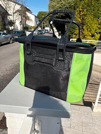 Borsa usata ma perfetta, non presenta tagli o buchi, zip perfette. lo l'ho usata per l'attrezzatura da pesca al colpo ma può essere usata da mare.
