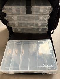 Ideale per chi pratica spinning per riporre gli artificiali nelle comode cassettine (6) con appositi scomparti rimovibili all’interno.