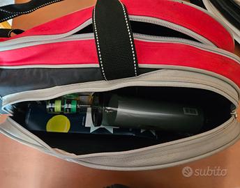 Borsa da tennis x 4 racchette in ottimo stato. Compreso quello che c'é nella tasca: tendi corde, 2 rubi di palline , antivibrazione
