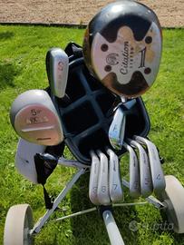 Borsa Golf + carrello + Mazze da Golf Mizuno: Putter + 4-5-6-7-8-9 + driver 5-22” Driver Citation – Mazza Cobra P – Mazza Yonex S Carrello Titleist