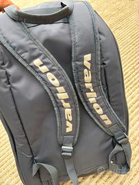 Borsa padel marca Varlion tenuta perfettamente. Vano porta scarpe con sacco separato. Vano porta pale. Vani accessori.