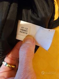 Borsa palestra in tessuto poliestere con tracolla e velcro per chiusura. 2 tasche con zip, una esterna sotto il logo e una sotto a rete. All'interno l'area è divisa in due zone da un divisorio morbido. La parte che appoggia al suolo è ricoperta da uno strato più rigido in parte rovinato. Trattasi di prodotto originale come documentato dalle foto e prodotto nel luglio 2012. Codice V86891 A43010