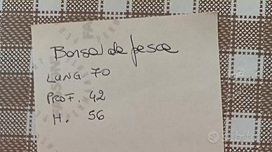 Borsa pesca da gara mai usata molto grande. Dotata di tasca porta nassa, è dotata di due tasche laterali molto grandi. Dimensioni indicate in foto. No perditempo.