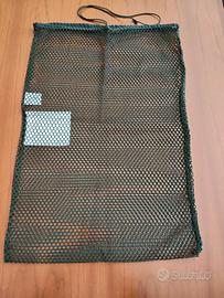 Con chiusura a coulisse Comoda e versatile per trasportare attrezzatture sportive (palline da golf o da tennis, ecc.), per contenere attrezzature da campeggio o per organizzare piccoli oggetti all'interno di uno zaino. Utile anche per riporre qualsiasi oggetto che necessiti di ventilazione. Nuova e mai usata. misura 50 x 75 cm