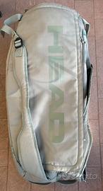 Borsa porta racchette Tennis HEAD da sei racchette, usata pochissimo con tutte le zip funzionanti. A disposizione per foto aggiuntive e per qualsiasi altra domanda.