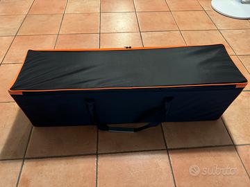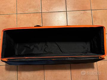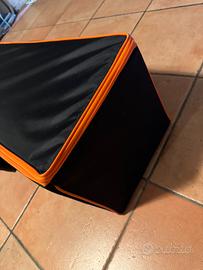 Borsa da pesca nera con bordi arancioni rigida porta minuteria accessori panchetto o rulli e rastrelliere,made in italy completamente sfoderabile misure 100x30x30 in perfetto stato,max serietà.