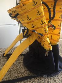 Sacca sport gialla e blu da usare per sprot, giochi spiaggia diametro cm.30 circa, altezza cm. 55 con spallacci imbottiti per il trasporto nuova mai usata con logo Paperino