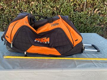 Borsa/Trolley KTM usata per trasporto materiale motocross sacca per casco, sacca per scarponi, telo per seduta incorporato. Vendo così come da foto