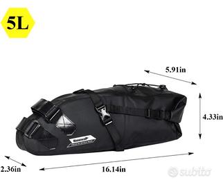 Vendo borsa per bici MTB usata pochissimo, composta da poliestere 500D di elevata resistenza e tessuto PVC impermeabile, impermeabile al 100%, antistrappi e antigraffi per un lungo uso.