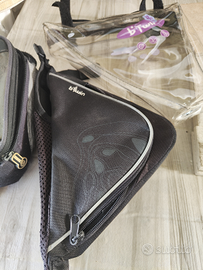 Vendo per inutilizzo ilseguente borsello sotto sella btwin con due tasche separate, più borselli da appendere al telaio più due ciclo computer wireless conta km, velocità orario ecc