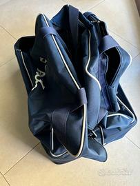 Borsone da calcio in ottime condizioni, senza buchi ne usure. Cerniere funzionanti, interno ed esterno puliti a eccezione di qualche macchia sulla base.