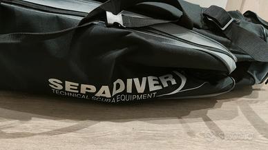 vendo bellissimo e resistente borsone da viaggio per attrezzature da sub. modello Easy travel XL della Sepadiver. Di ottima fattura, con ruote e spallacci per trasporto a spalla. con tasche laterali capienti. vendo senza attrezzatura interna. misure indicative 100x50x300 cm , variabili in base al contenuto che si inserisce. Non conviene spedire perché dati gli ingombri potrebbe costare tanto.