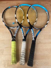 Vendo borsone porta racchette e 3 racchette Pure Drive Babolat e Pure Drive Lite, usate, datate, in buono stato. Prezzo netto escluse spese di spedizione