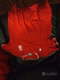 Vendo borsone da calcio macron con 3 magliette maniche corte, una polo, una felpa ed un pantaloncino , età 6/7 anni.