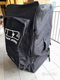 borsone trolley MULTIUSO formato 100x50x45 cm con ruote , maniglie e bratelle per trasporto . vano anteriore aggiuntivo 60x40x10.
