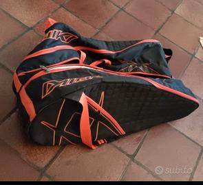 Vendesi bellissimo borsone porta racchette Völkl mega bag. Borsone in ottimo stato. Nello scompartimento centrale funziona una sola delle due zip che permette comunque di aprire e chiudere regolarmente il vano. Colore nero/arancio. Capiente e funzionale, dotato di portascarpe sul retro. Vero affare