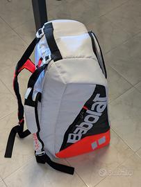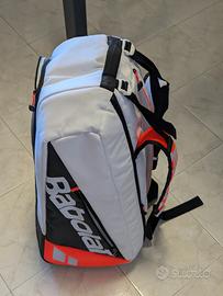 Vendo bellissimo borsone da tennis Babolat Pure Strike (versione da 6 racchette) per inutilizzo. La borsa è stata portata in campo solo 1 o 2 volte, è praticamente indistinguibile dal nuovo: niente graffi, zip perfette e interni immacolati. Ideale per chi cerca un borsone tecnico, capiente ma non troppo ingombrante, con il design iconico della linea Pure Strike (bianco, rosso e nero). Caratteristiche principali: Capacità: Fino a 6 racchette. Scomparti: Due ampi scomparti principali (di cui uno isotermico per proteggere le corde e le racchette dagli sbalzi di temperatura). Tasche extra: Tasche laterali rigide per proteggere gli accessori e gli oggetti personali. Comfort: Spallacci imbottiti e regolabili per il trasporto a zaino o a mano. Materiali: Alta resistenza e finiture premium. Condizioni: 10/10 (Usata due volte al massimo).