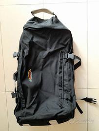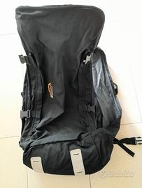Vendo borsone zaino – marca Greensport Monte Bianco – colore nero - con maniglia e con tracolla – con vano profondo molto capiente dotato di fibbie di sicurezza e chiusura a zip – con cinghie a scatto su tutti i lati dove si possono infilare materassini giacche o altro – vano posteriore contenente l’allacciatura a spalle ed alla vita per portare il borsone a zaino. P.S.: La zip del vano posteriore è rotto ma si può cambiare, in ogni caso è fermato dalle cinghie a scatto.