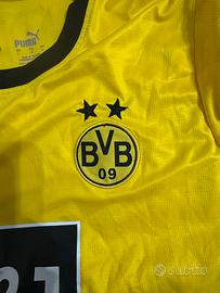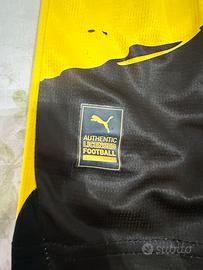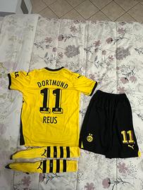 Si tratta del kit gara ufficiale Home del Borussia Dortmund per la stagione 2023/24. Il completo, prodotto da Puma, include maglia, pantaloncini e calzini, tutti nei tradizionali colori giallo e nero del club.