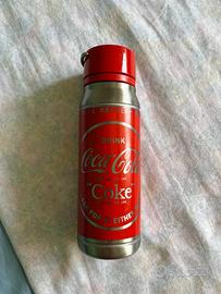 Borraccia termica in acciaio inox con stampa Coca-Cola in stile pubblicitario vintage.