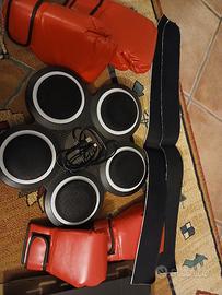 Un gioco divertente per adulti e bambini condizioni nuove mai utilizzato. I bersagli si accendono e reagiscono ai colpi con base musicale. Contiene supporti per il montaggio a muro e coppia di guanti taglia adulto e bambino. per l'allenamento amatoriale fitboxe e cardio