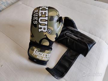 Descrizione: Guantoni da Box BOXEUR DES RUES ORIGINALI da 6 Oz, colore Camouflage/Gray con interni nero praticamente perfetti, Logo BOXEUR DES RUES originale sul dorso con solo qualche lieve segno di utilizzo. Guanti con fascia chiudente in peltro perfetta ed integra senza tagli o sfilature, pari al nuovo. I guantoni sono quelli che appaio nelle foto descrittive e vengono venduti senza sacca.