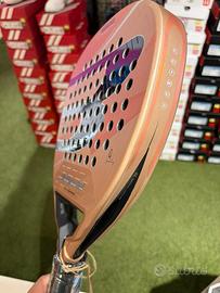 La Elite FT 25 LTD si veste a festa per il torneo più esclusivo dell'anno. La racchetta della nostra numero 1 al mondo, Gemma Triay, unisce eleganza, potenza e controllo con un tocco di lusso unico, con una finitura iridescente su una base oro rosa che non solo abbaglia la vista, ma riflette anche lo stile in ogni colpo.