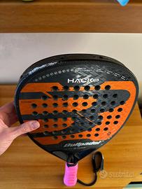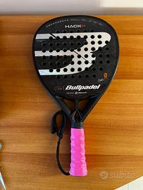 Vendo racchetta da padel Bullpadel hack 03 di Pachito Navarro. Racchetta ben tenuta e con ancora più di metà vita davanti. La racchetta presenta segni sulla testa che non incidono sulle prestazioni poiché progettata appositamente per ricevere colpi avendo in paracolpi integrato come molte altre bullpadel. Non necessita infatti il montaggio di un paracolpi esterno che andrebbe (anche se di poco) a variare il bilanciamento.