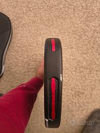 Presenta normali segni estetici sul bordo dovuti al gioco (visibili in foto), che non influiscono sulle prestazioni. Con copertura nera, la racchetta è praticamente nuova.