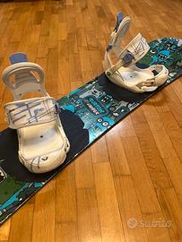 Vendo tavola snowboard burton chopper con attacchi.tavola ottima per imparare grazie al camber che evita il controlamina e il flex morbido molto comodi anche gli attacchi flow che si aprono e chiudono velocemente.Tavola e attacchi perfettamente funzionanti!..segni estetici di usura ma niente che comprometta il funzionamento.top in ottime conzizioni e fondo con graffi leggeri(nessun solco importante)