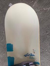 Vendo setup completo da snowboard da donna/ragazza, composto da: 🏂 Tavola: Burton Feather – 144 cm Condizioni: Buone. Presenta alcuni segni di utilizzo. Soletta: in buone condizioni, con alcuni segni d’uso. Nota: tavola sciolinata (sciolina grassa). 🔩 Attacchi: Flow Essence – taglia M-L Condizioni: Discrete. Cricchetti e millerighe perfettamente funzionanti. Hanno i loro anni e possono ancora essere utilizzati. ❌ Non vendo separatamente. 📦 Consegna a mano o spedizione disponibile, con UPS o Bartolini. Per qualsiasi informazione o foto aggiuntiva, scrivetemi pure! Salomon, Nitro, Drake, K2, Jones, Never Summer, Nidecker, Burton.