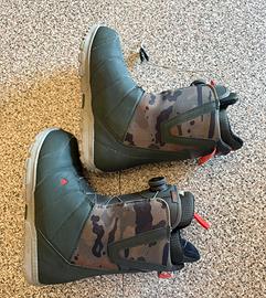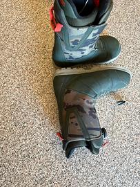 Vendo boots burton motoboa per passaggio a step on, come si vede dalle foto sono funzionanti ma hanno i loro segni di usura anche perché li ho usati per imparare. In totale ci ho fatto 4 stagioni e vendo anche in coppia con gli attacchi freestyle burton anche loro con 4 stagioni in totale (se li prendete in coppia vi faccio un prezzo unico migliore) Io li pagai un totale di 420€ (150 gli attacchi e 270€ gli scarponi)