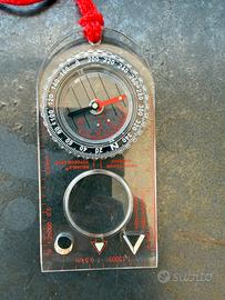 Vendo bussola professionale da orientamento con base trasparente, ideale per navigazione terrestre, escursionismo e softair. Grazie alla base piatta e trasparente, è perfetta per essere utilizzata sopra le mappe per tracciare rotte e azimut. Caratteristiche principali: • Base Trasparente: Con righelli e scale graduate in millimetri e diverse scale di rapporto (1:15000, 1:25000, 1:50000) per misurare le distanze reali sulla mappa. • Lente di Ingrandimento: Integrata nella base per leggere facilmente i dettagli più piccoli della cartografia. • Ghiera Rotante: Regolabile a 360^\circ con indicazioni dei punti cardinali. • Dime per tracciamento: Include fori sagomati (cerchio e triangolo) per segnare punti di controllo o obiettivi sulla mappa. • Accessori: Completa di laccio rosso da collo per averla sempre a portata di mano. • Stato: Come nuova, perfettamente funzionante.