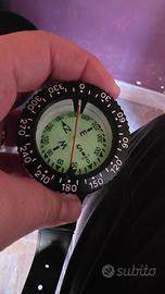 Bussola subacquea da polso, ghiera girevole,retro illuminescente con finestra per navigazione.Perfetta