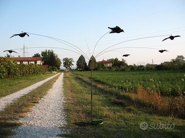 VENDO GIRANDOLA ARTIGIANALE PER CACCIA, STORNI, COLOMBACCI, ALLODOLE, ECC ECC. COMPOSTA DA UN MOTORIDUTTORE 12 VOLT DI QUALITA' CON RIDUTTORE SU CUSCINETTO, INSCATOLATO DI LEGNO CON FLANGIE IN ACCIAIO ZINCATO E VERNICIATO. COMPLETO DI SCATOLA IN PLASTICA TIPO ROBUSTO IP 55, CON ALL'INTERNO IL REGOLATORE DI VELOCITA' E BATTERIA 12 V - 7 Ah, CON ALL'ESTERNO UN POMELLO PER LA REGOLAZIONE DELLA VELOCITA' E 2 PRESE PER CARICA BATTERIE, E MOTORE GIRANDOLA. IN UNA SCATOLA SI POSSONO ATTACCARE ANCHE 2 MOTORI GIRANDOLE. FORNISCO ANCHE PALETTO TELESCOPICO ALLUNGABILE, CAVO E CARICA BATTERIE, TUTTO QUELLO CHE VEDETE IN FOTO, TRANNE STAMPI E STECCHE ! VIENE FORNITA ANCHE LA TESTA DELLA GIRANDOLA, IN MATERIALE PLASTICO, NAYLON FATTA AL TORNIO, COME LA VOLETE VOI, CON 4, 6, 8 FORI, IN BASE AL DIAMETRO DELLE STECCHE IN ACCIAIO CHE CI DOVETE METTERE, 4, 5, 6 mm DI DIAMETRO. PER QUALSIASI INFORMAZIONI O CHIARIMENTI CONTATTATEMI PURE. GRAZIE