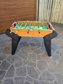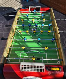 calcetto della smoby con gambe robuste di plastica, la struttura laterale in legno, la parte del portiera in plastica resistente ,la base interna e leggermente rovinata da una parte dalla parte del portiere vedere foto allegate