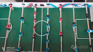 Comprato alla Tois, usato, da bar o da mettere al balcone, in legno, si può smontare, compreso di 2 palline, difettato in una porta ma si può aggiustare ( la parte sotto è scesa e se gli avversari tirano il pallone non entra) Ve do euro 30 non spedisco da venire a prendere a Milano zona Famagosta