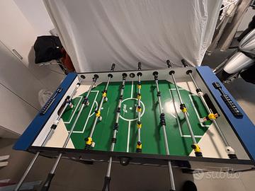 Calcio Balilla da interno realizzato in in MDF. Dotato di aste telescopiche, segnapunti e bordi angolari per il ritorno della pallina. Incluse nella confezione anche 3 palline per incominciare subito a giocare in compagnia. Dimensioni regolamentari, 132x72x87 cm. Pesa 43 kg ed è consigliato a bambini con età superiore a 8 anni. Caratteristiche: Materiale: mdf Aste telescopiche Angolari campo Segnapunti 3 palline incluse Età consigliata: 8+ anni Dimensioni: 132x72x87 cm