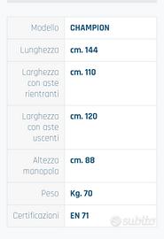 Proponiamo in vendita un nuovissimo calciobalilla professionale della garlando uso casa prezzo listino 650 euro prezzo in offerta a 560 Iva inclusa con aste passanti prezzo in offerta a 590 Iva inclusa con aste telescopiche Possibilità di spedizione gratuita in tutta Italia . visita il nostro shop su LUCARTECBILIARDI.IT Il calciobalilla Garlando Champion è uno dei nuovissimi modelli della linea Richiudibile ( Salvaspazio ) , con un design Rovere Grigio. Per richiuderlo sarà sufficiente ripiegare le gambe all'interno del mobile. Il calciobalilla, una volta richiuso, resta perfettamente in piedi in verticale Le gambe sono molto robuste e spesse, questo permette di non compromettere la stabilità del calciobalilla durante il gioco Ideale per tutti gli ambienti in cui non si ha la possibilità di dedicare uno spazio apposito al calciobalilla. CARATTERISTICHE TECNICHE Aste da 16mm originali garlando Boccole con cuscinetti Vetro temperato da 5mm gambe reclinabili in legno peso 70 kg Spray lubrificante in omaggio 10 palline incluse per ulteriori informazioni o modelli non esitate a contattarci anche telefonicamente al info su calcio balilla, biliardo ,ping pong, biliardino, carambola, calciobalilla