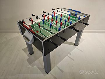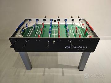 Calciobalilla professionale da casa . Prodotto nuovo disponibile in pronta consegna. Disponibile per qualsiasi prova o verifica da vicino. L'entry level professionale della linea Evolution F-200 EVOLUTION Il modello professionale più semplice della linea Evolution condivide l’elegante abbinamento nero e silver che si ispira al glamour dell'hi-tech. Come il suo gemello F-200, è un calciobalilla robusto, di grande giocabilità e adatto all’uso di tutta la famiglia. Spediamo in tutta Italia (costo aggiuntivo) Offriamo anche possibilità di trasporto e montaggio al Piano per le zone limitrofe (costo aggiuntivo ). Visita anche il nostro sito: www.tnbiliardi.com troverete una vasta gamma di carambola Biliardino ping pong ecc..