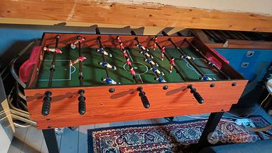 Calcio balilla in legno e altri materiali fornito anche di pallina da gioco.