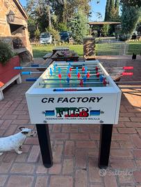 Calcio Balilla ufficiale omologato FICB prodotto da CR Factory. Mobile mono scocca senza gettoniera, il sistema di sponde rinforzate FRIM SPORT ad alta precisione, rendono il modello CR Factory unico nel suo genere. Mai usato.