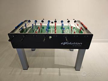 Calciobalilla professionale da casa . Prodotto nuovo disponibile in pronta consegna. Disponibile per qualsiasi prova o verifica da vicino. L'entry level professionale della linea Evolution F-200 EVOLUTION Il modello professionale più semplice della linea Evolution condivide l’elegante abbinamento nero e silver che si ispira al glamour dell'hi-tech. Come il suo gemello F-200, è un calciobalilla robusto, di grande giocabilità e adatto all’uso di tutta la famiglia. Spediamo in tutta Italia (costo aggiuntivo) Offriamo anche possibilità di trasporto e montaggio al Piano per le zone limitrofe (costo aggiuntivo ). Visita anche il nostro sito: www.tnbiliardi.com troverete una vasta gamma di carambola Biliardino ping pong ecc..