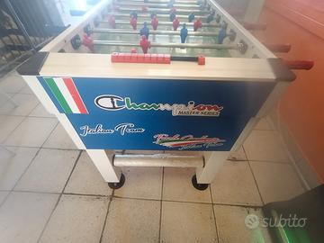 vendo calcio balilla professionale calcio balilla perfettamente funzionante in tutte le sue parti calcio balilla marca Roberto sport modello Champions omologato italian Team peso 90 kg misure campo gioco 111 x 70 x 90 gettoniera free play per info altre foto e video 3478783061 ciro