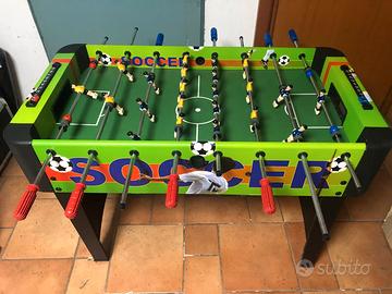 Vendo calcio balilla soccer con piedi in legno smontabili è ideale per tutte le altezze ed età, sia per ragazzi che per gli adulti . Colori vivaci struttura solida pari a nuovo. Misure 120 x 60 cm altezza 80 cm.