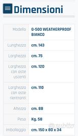 Calciobalilla garlando G500 waterproof nuovo Linea professionale da casa outdoor disponibile pronta consegna prodotto ancora inscatolato -Prezzo in offerta aste passanti 770 euro iva inclusa aste rientranti 800 euro iva inclusa -In omaggio copertura garlando -Spedizione gratuita in tutta Italia Il nuovo G-500 Weatherproof ha i piedini regolabili di serie, per avere sempre un campo di gioco perfettamente livellato su ogni terreno Questo nuovo modello di G-500 Weatherproof ha mobile bianco con gambe e dettagli color silver ed è dotato di piedini regolabili di serie per avere un campo di gioco sempre livellato su ogni tipo di terreno. Gambe in metallo con verniciatura a polvere epossidica color silver, resistente alla pioggia. Le notevoli dimensioni (cm. 9 x 9) garantiscono la necessaria stabilità sul terreno. Modello per esterno, è creato per soddisfare le esigenze di tutti coloro che desiderano dedicarsi al loro gioco preferito all’aperto, è realizzato con speciali componenti e materiali resistenti agli agenti atmosferici Per ulteriori informazioni o modelli di biliardino, calcetto ,biliardo, calciobalilla, ping pong, bigliardino, carambola non esitate a contattarci anche telefonicamente o tramite mail Lucartec@libero.it